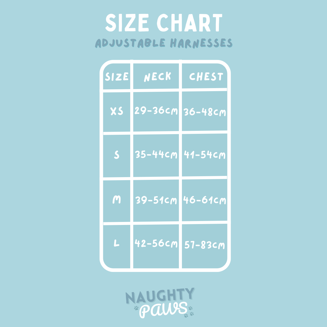 For the perfect fit, check out the size guide above and get your pup ready for their next big adventure with Naughty Paws AU! 🐾