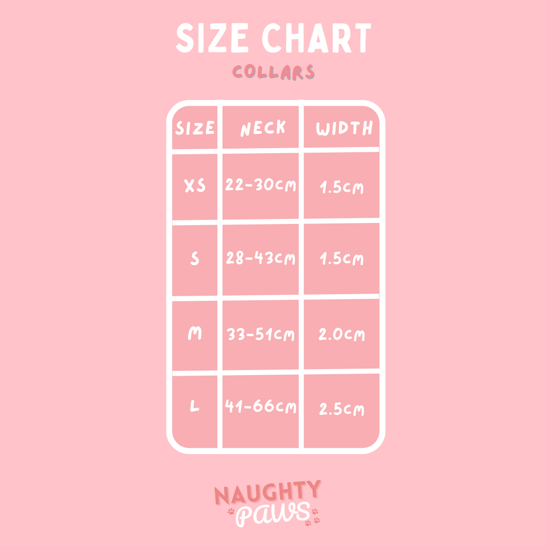 If unsure on your dogs size or don't see your pups size?? send us an email at - naughty.pawsbandanas@gmail.com we are always happy to help.