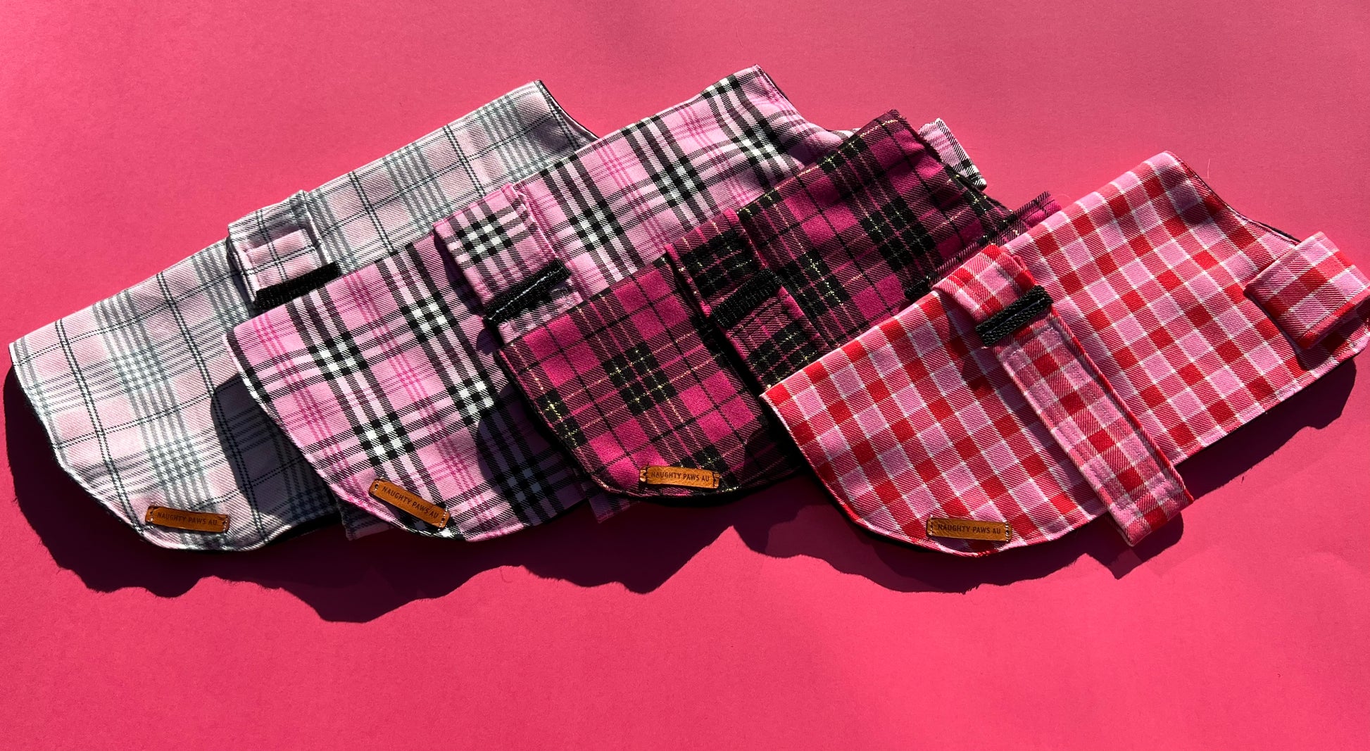 Our handmade dog coats are the perfect accessory for your furry friend, keeping them warm and stylish during the colder months. Made with luxury imported plaid fabric from the UK, each coat is not only stylish but also durable and long-lasting, ensuring that your dog's coat will stand up to wear and tear. With more than 20 different colors to choose from, our dog coats allow you to find the perfect shade to match your pet's personality and your personal style. They are available in a variety of sizes to accommodate dogs of all breeds and sizes, and custom sizing is also available upon request. Our dog coats are not just a fashion statement, they are a functional and practical accessory that will keep your pet warm and comfortable during the cooler months. With our handmade dog coats, your furry friend will look and feel their best, no matter the weather.